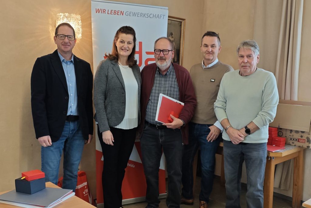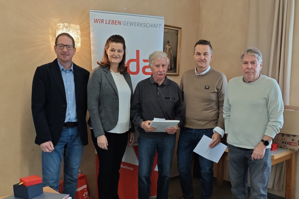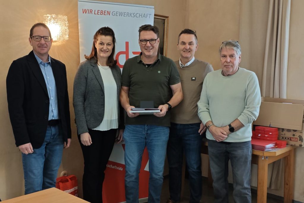 Anwesend waren Bürgermeister Martin Kumler, vida-Landesvorsitzende Uschi Heitzer, vida-Landesgeschäftsführer Heimo Mauczka, AK-Bezirksstellenleiter Philipp Parteder, vidahelp-Bundesvorsitzende Yvonne Heuber und ÖBV-Landesgeschäftsführerin Caroline Minarik-Turner.