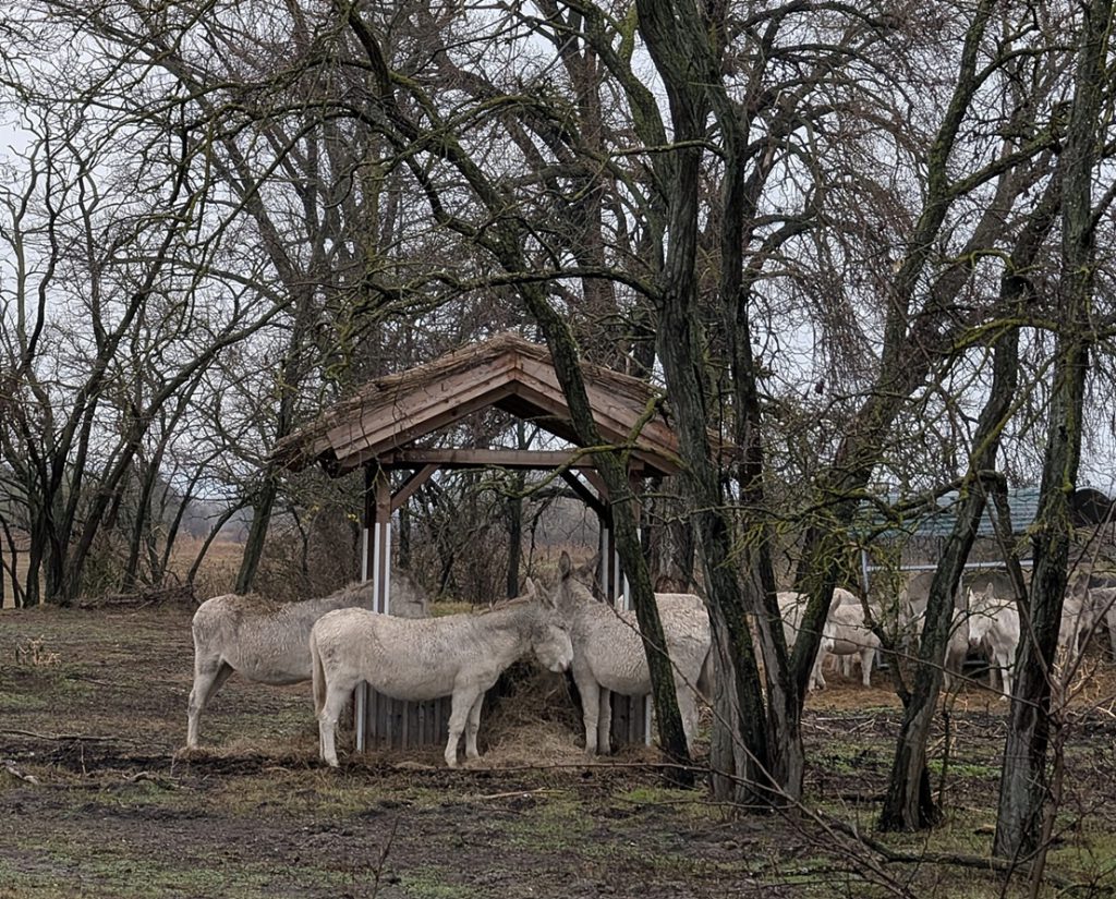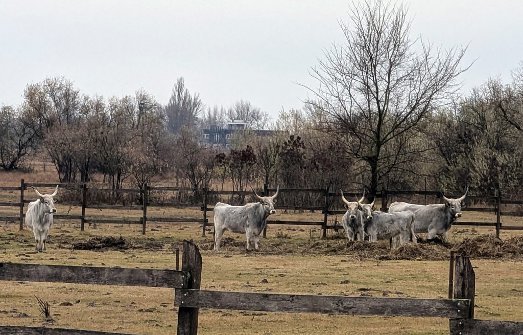 Das Wetter hatte Mitleid mit uns und den Pferden – der Regen ließ nach, und die Stimmung besserte sich, als die grauen Esel und die Langhornrinder in Sicht kamen.