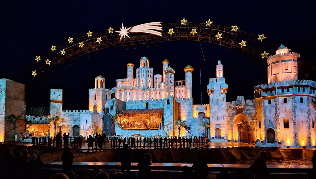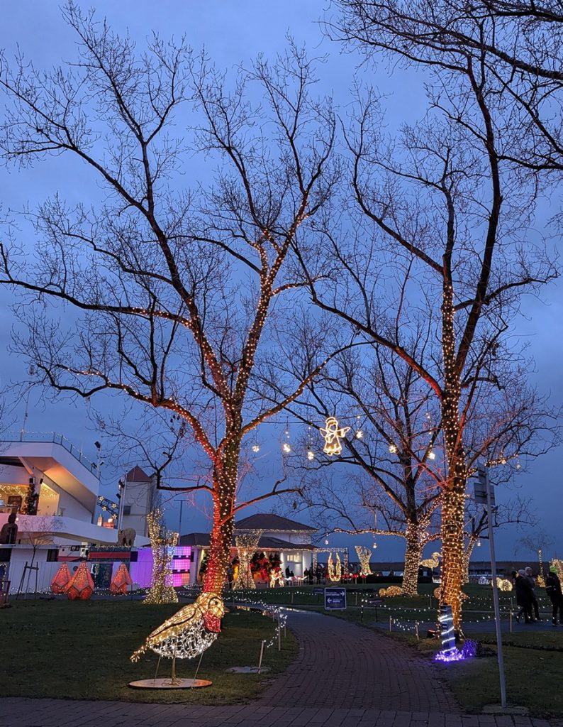 Nach der fast zweistündigen Kutschenfahrt überquerten wir den Neusiedler See mit der Drescher Line mit gutem Punsch an Bord nach Mörbisch, wo wir den Lichtergarten und das Krippenspiel auf der Seebühne bewundern durften.