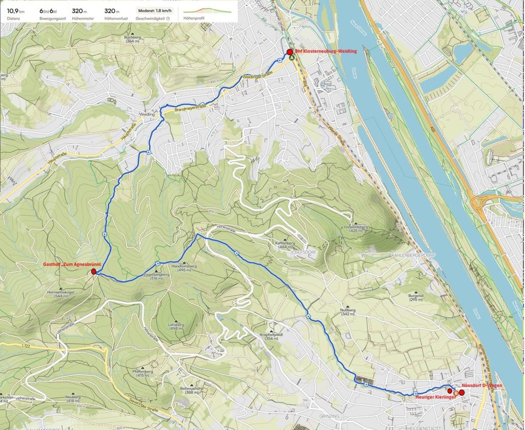 Gemeinsam wanderten wir von Klosterneuburg über die Jägerwiese bis nach Grinzing.